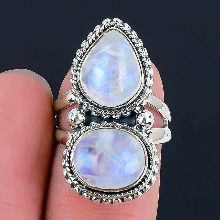 Natural Moonstone 925 Silver Sister Statement Daughter Gift Ring Jewelry US 6.5