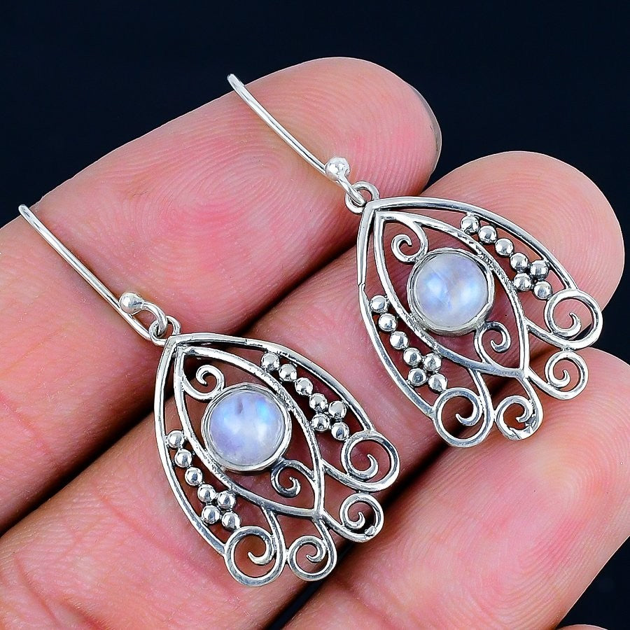 Natural Moonstone 925 Silver Unique Bezel Hook June Dangle Boho Earrings Jewelry