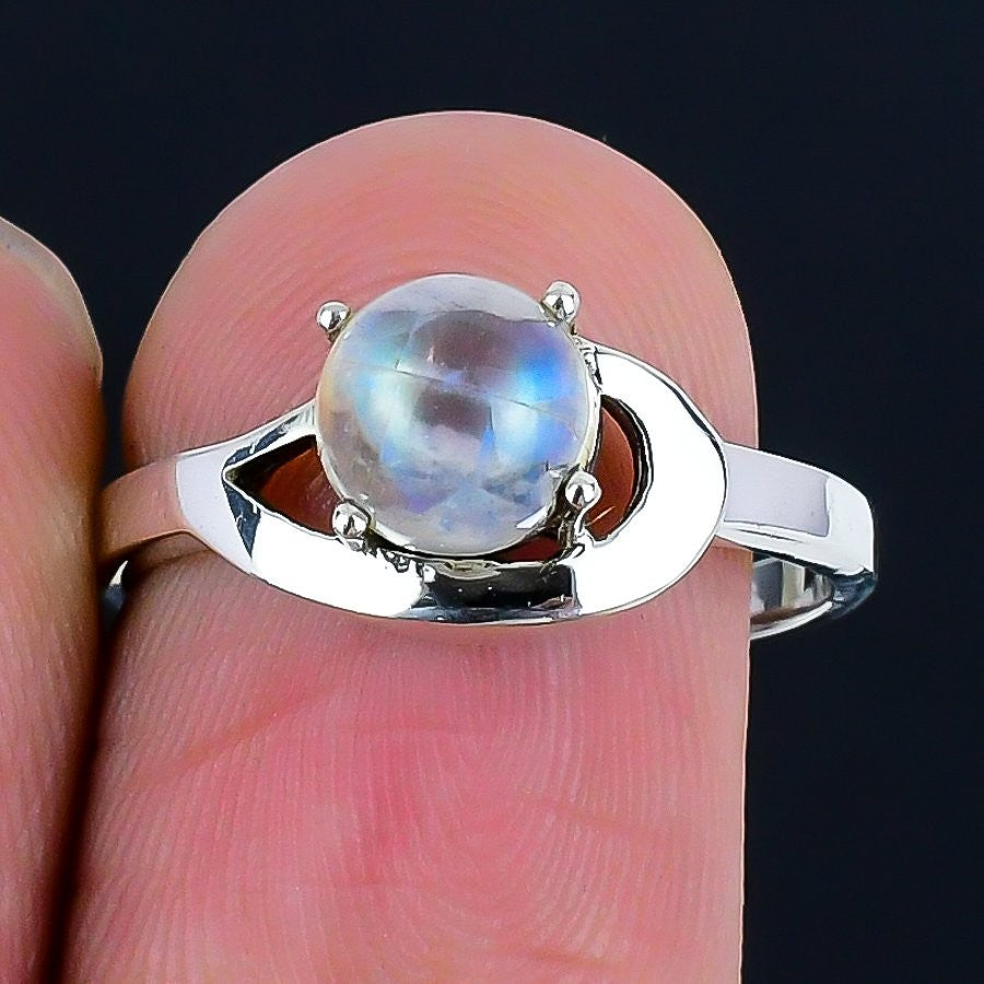 Natural Moonstone 925 Sterling Silver Statement Mother Boho Ring Jewelry US 7.5