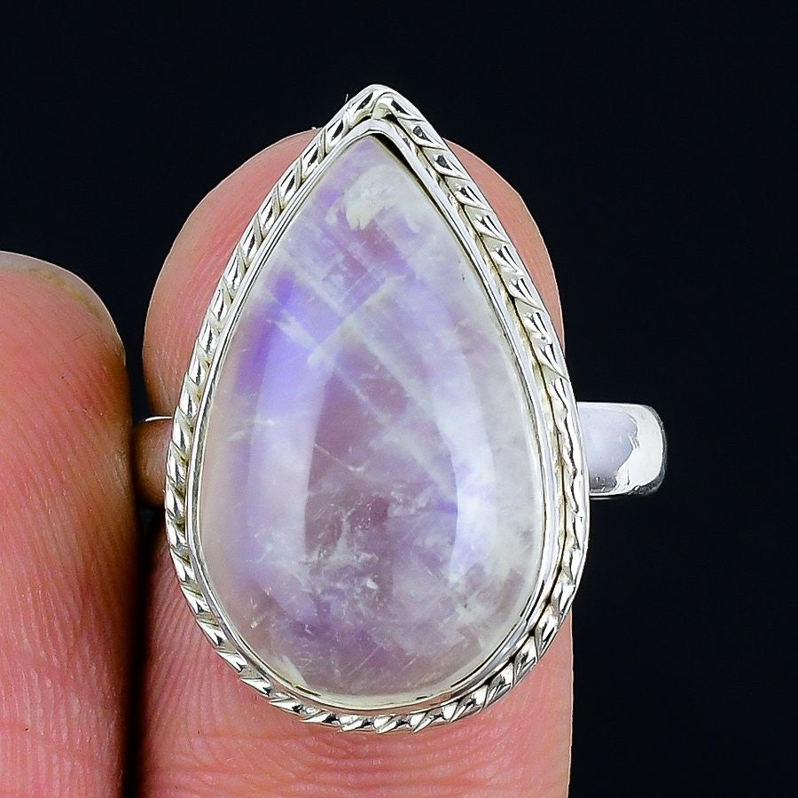 Natural Moonstone Art Deco Anniversary Statement Boho Ring Size 8.5 Solid Silver