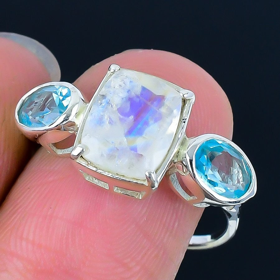Natural Moonstone Faceted 925 Sterling Silver Statement Anniversary Ring Jewelry