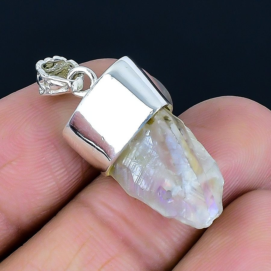 Natural Moonstone Rough Mother June Artisan Birthday Pendant Jewelry 925 Silver