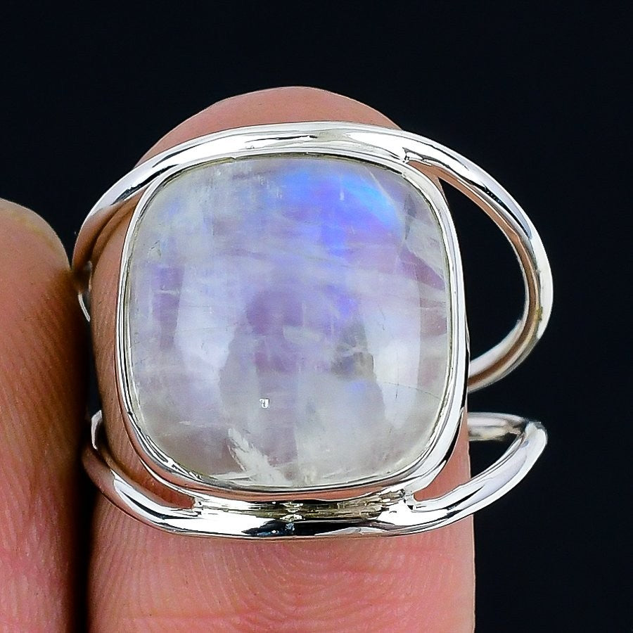 Natural Moonstone Solid Silver Wedding Statement Crown Chakra Wife Ring US 8.5