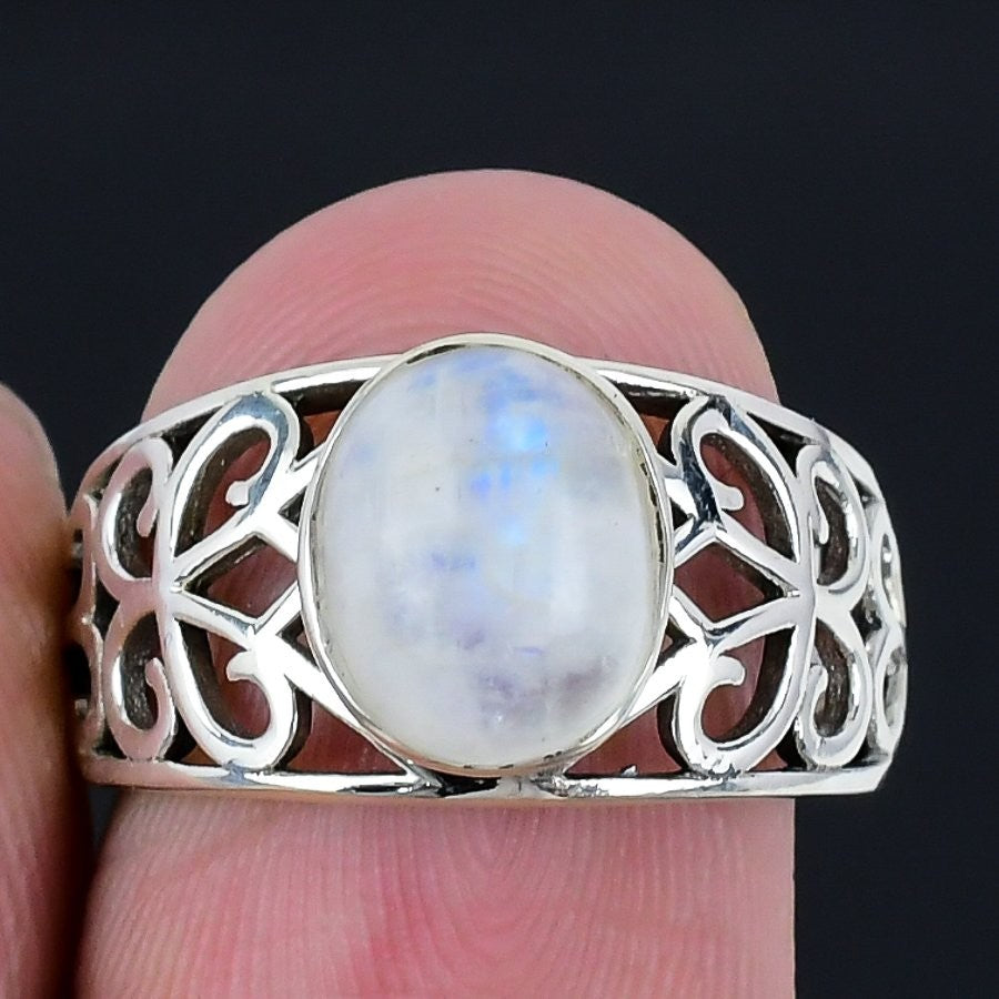 Natural Moonstone Statement Daughter Gift Ring Jewelry 925 Sterling Silver US 7