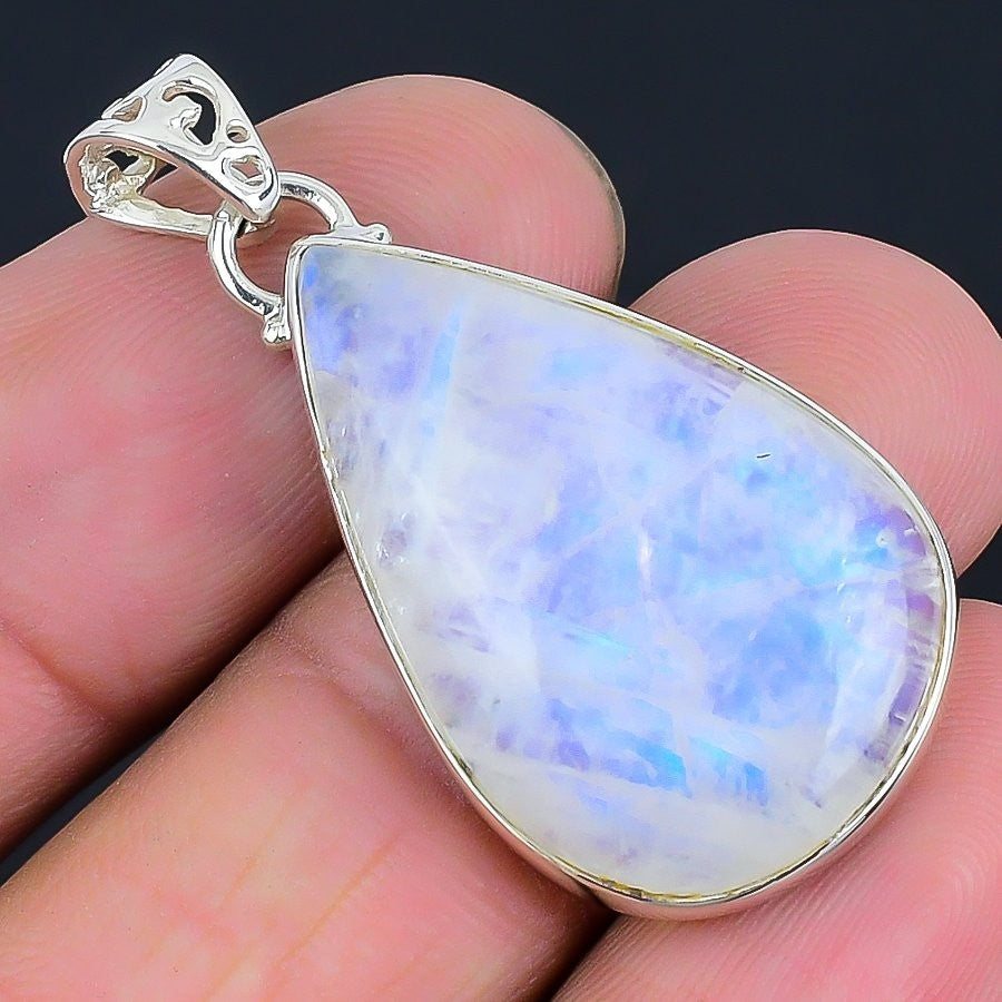 Natural Moonstone Sterling Silver Channel Set Best Friend Gift Pendant Jewelry