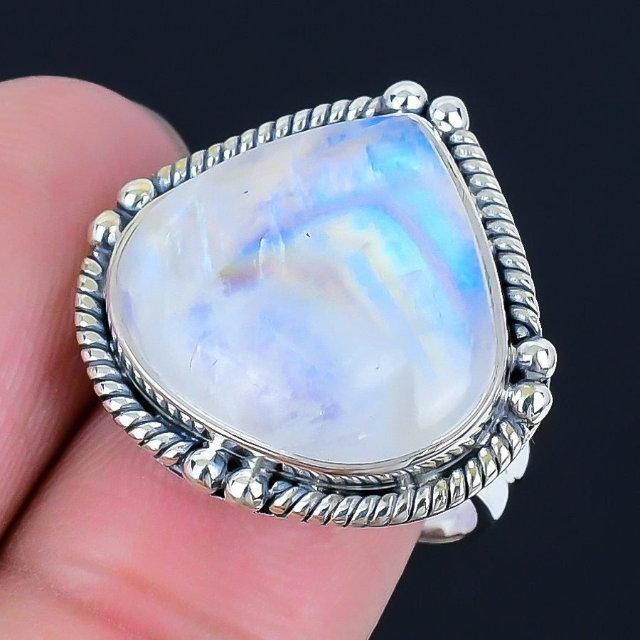 Natural Moonstone Sterling Silver Wedding Cluster June Birth Ring Jewelry Size 9