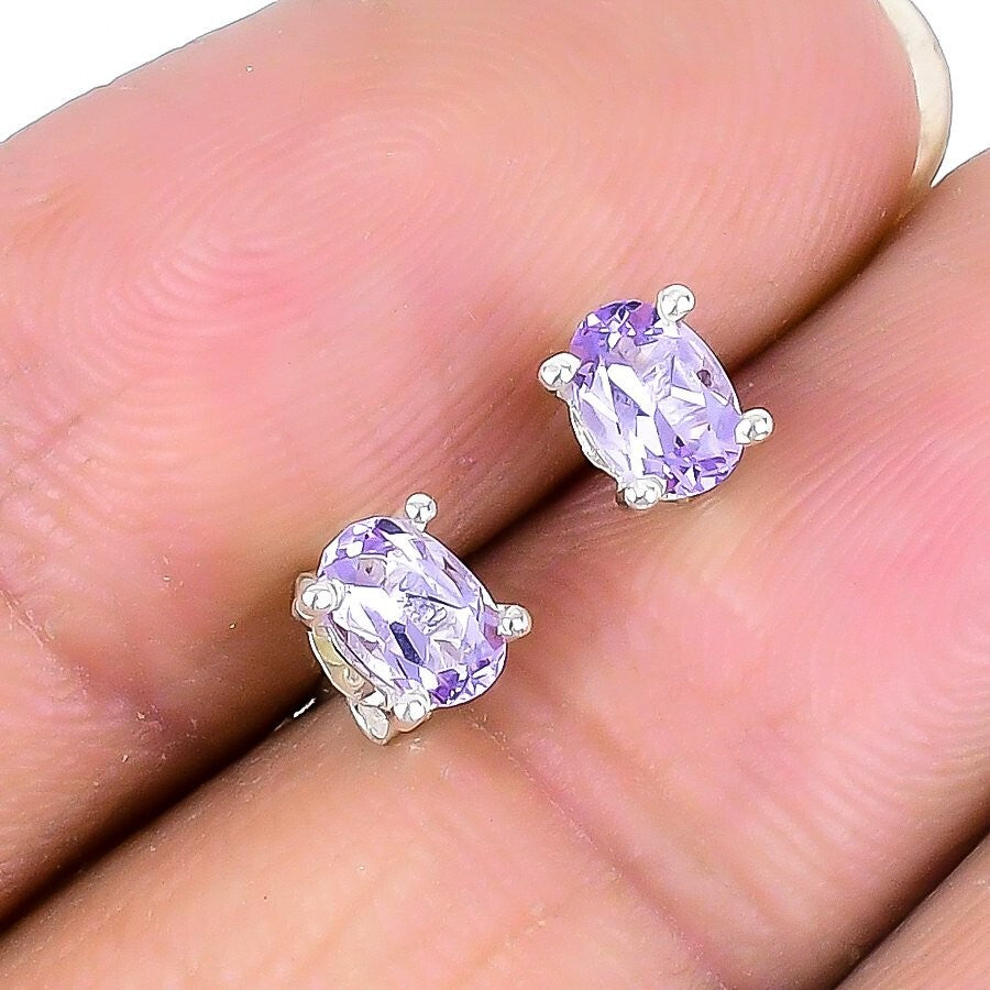 Natural Morganite Faceted 925 Silver Anniversary Stud Post Boho Earrings Jewelry
