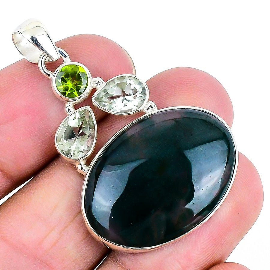 Natural Moss Agate 925 Silver Daughters Day Engagement Wife Boho Pendant Jewelry