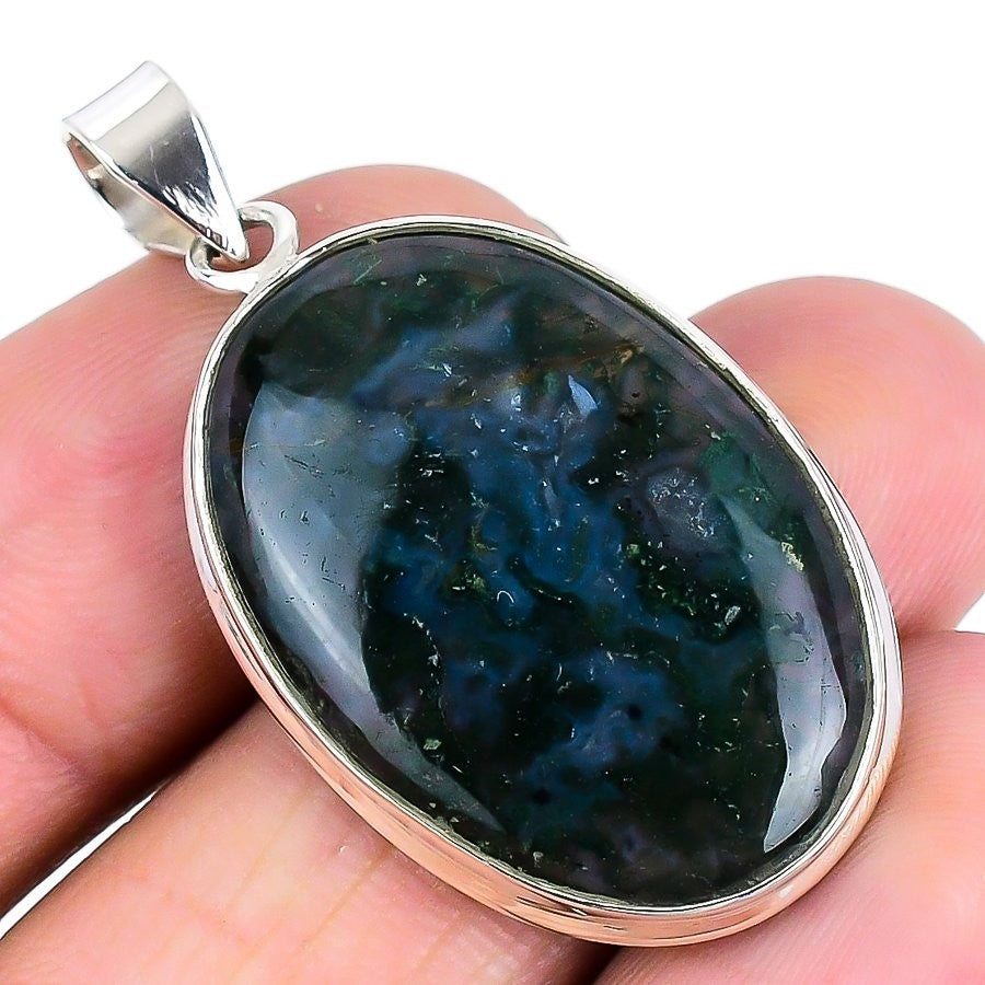 Natural Moss Agate Solid Silver Bezel Unique Trendy Handcrafted Art Deco Pendant