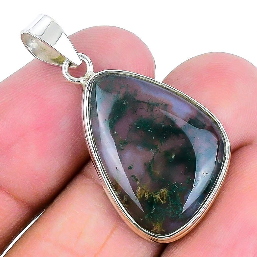 Natural Moss agate Solid Silver Engagement Mother Elegant Unique Wedding Pendant