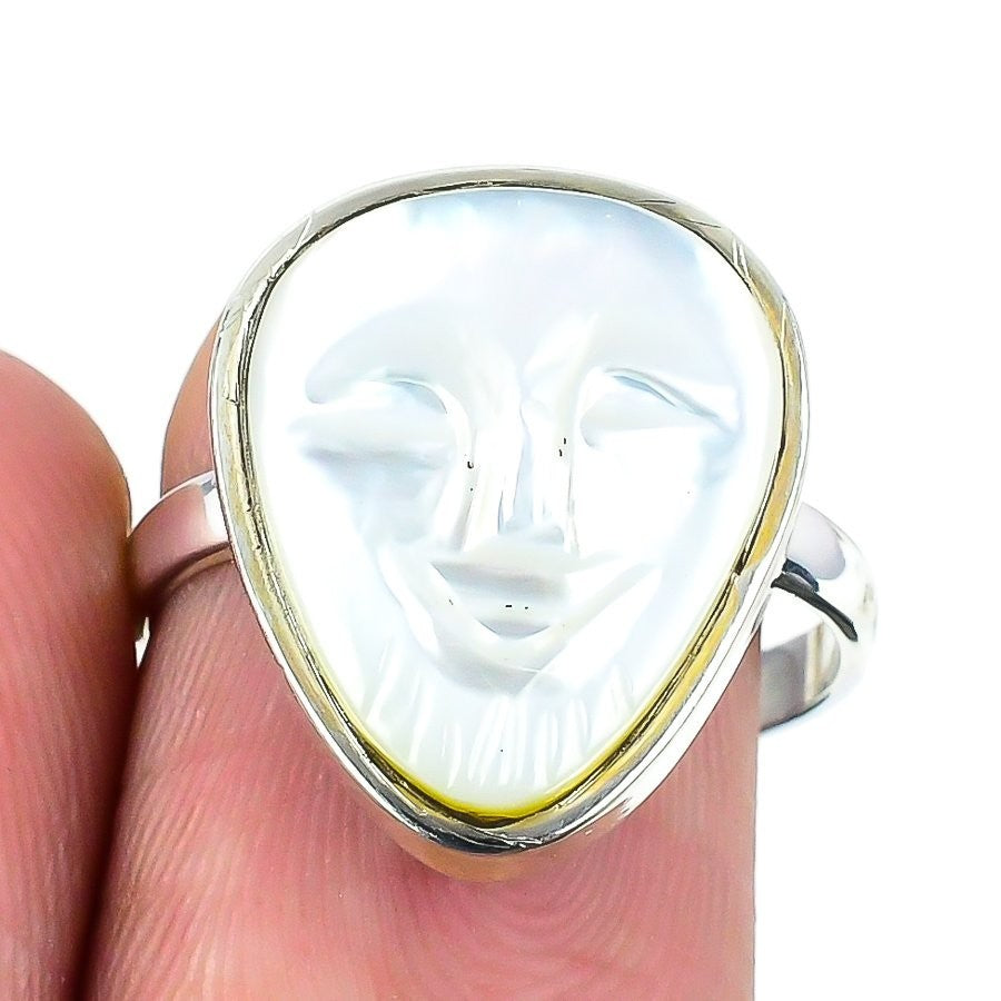 Natural Mother Of Pearl 925 Silver Trendy Statement Daughter Ring Jewelry US 8