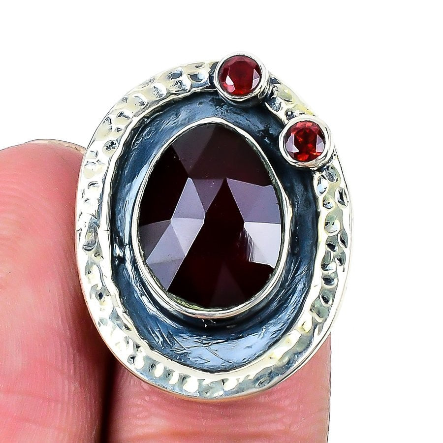 Natural Mozambique Garnet 925 Sterling Silver Statement Boho Ring Jewelry Size 7