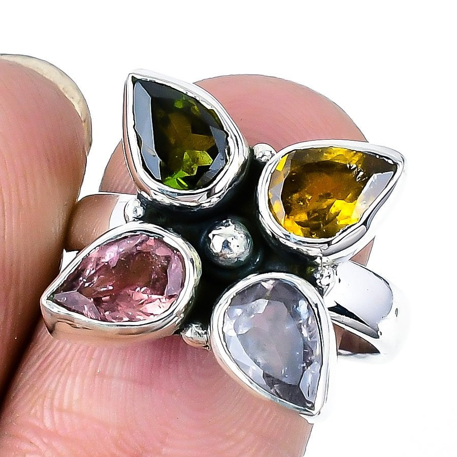 Natural Multi Tourmaline 925 Sterling Silver Statement Handcrafted Ring Jewelry