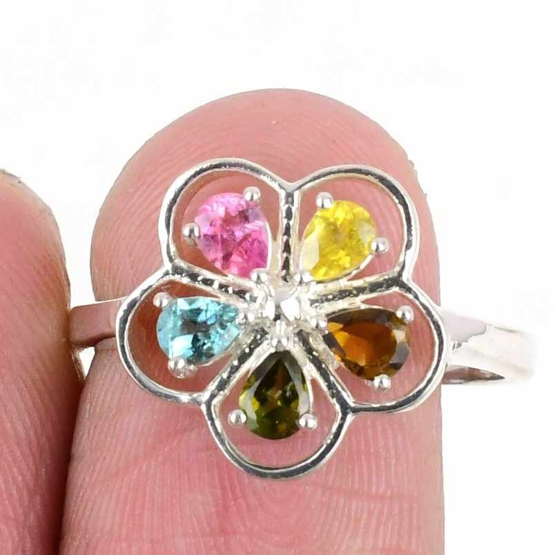 Natural Multi Tourmaline Boho Cluster Ring Jewelry Size 9 Solid Sterling Silver