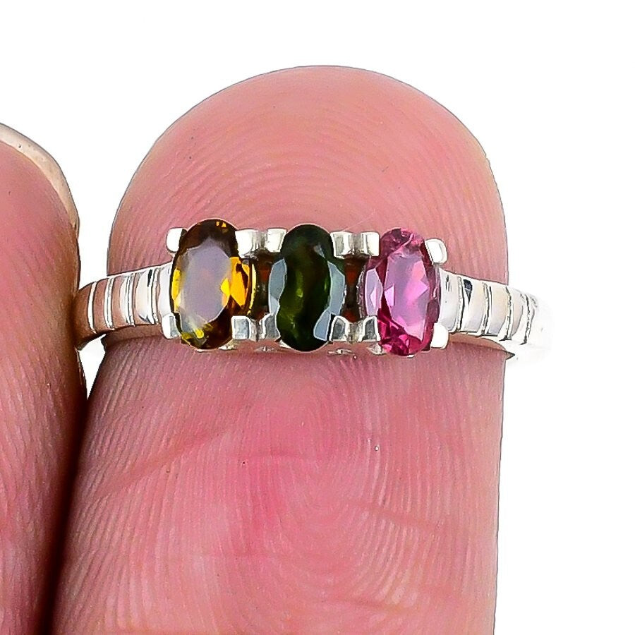 Natural Multi Tourmaline Mother Artisan Statement Ring Jewelry Size 6 925 Silver