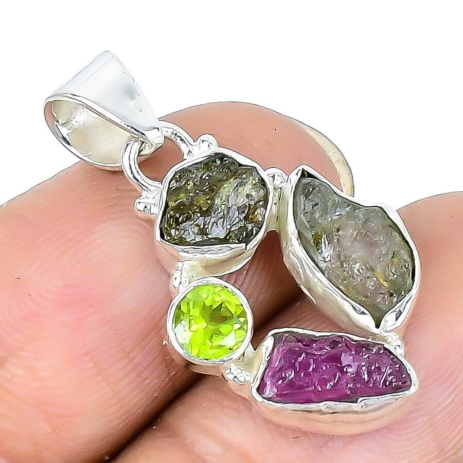 Natural Multi Tourmaline Solid Sterling Silver Daughter Trendy Unique Pendant