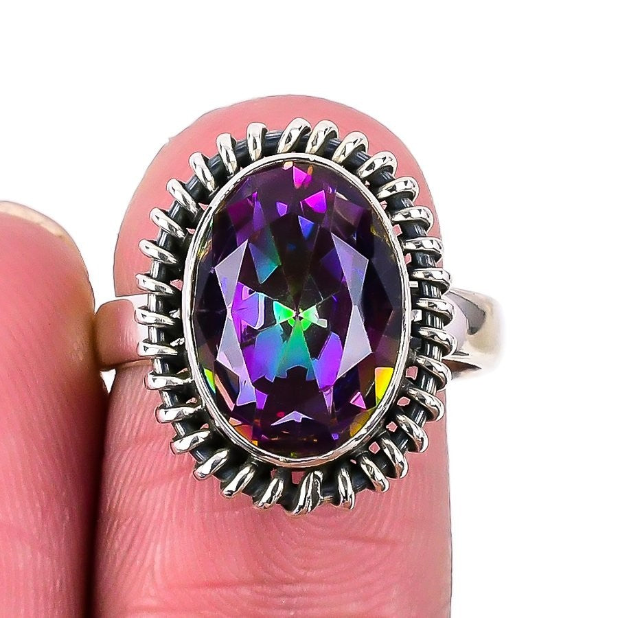 Natural Mystic Rainbow Topaz Sterling Silver Statement New Ring Jewelry Size 7.5