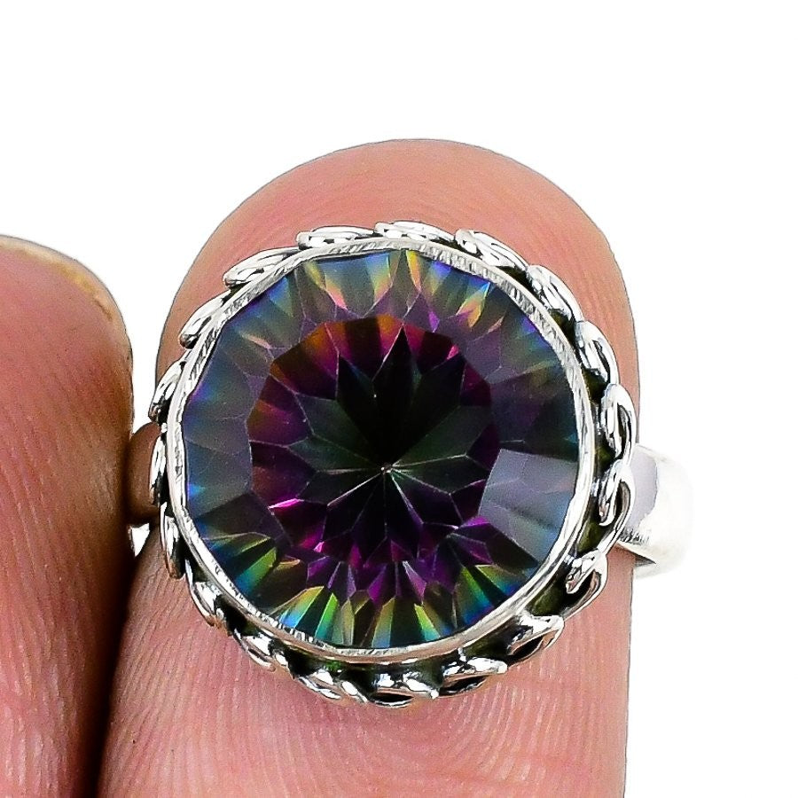 Natural Mystic Topaz 925�Solid�Silver Statement Bezel Unique Ring Jewelry US 6.5