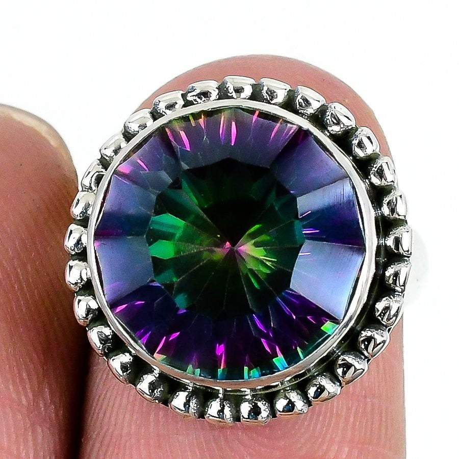 Natural Mystic Topaz 925 Sterling Silver Bezel Boho Statement Ring Jewelry US 6