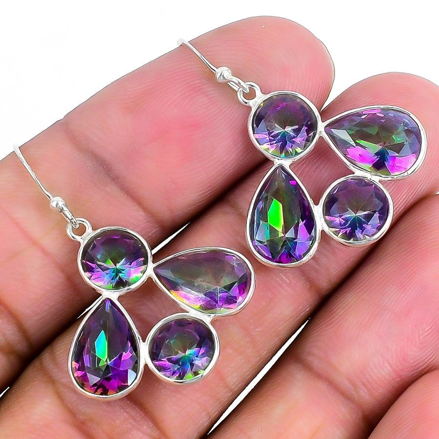 Natural Mystic Topaz 925 Sterling Silver Hook Trendy Wife Drop Earrings Jewelry