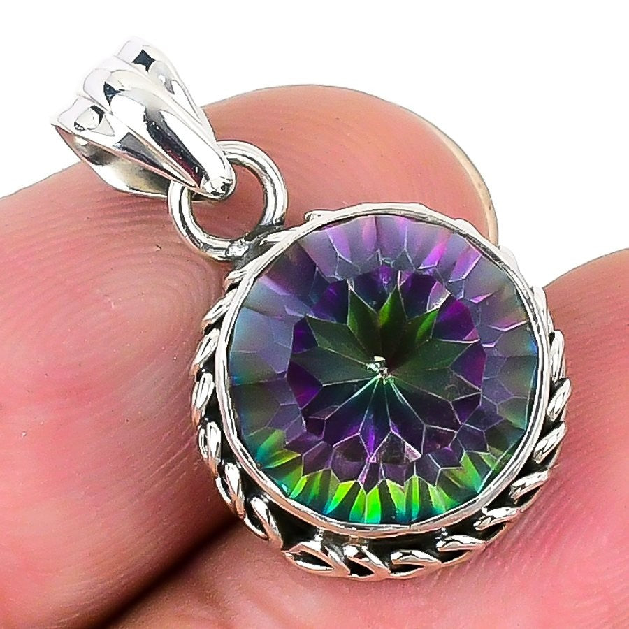Natural Mystic Topaz Best Daughters Gift Art Deco Pendant Solid Sterling Silver