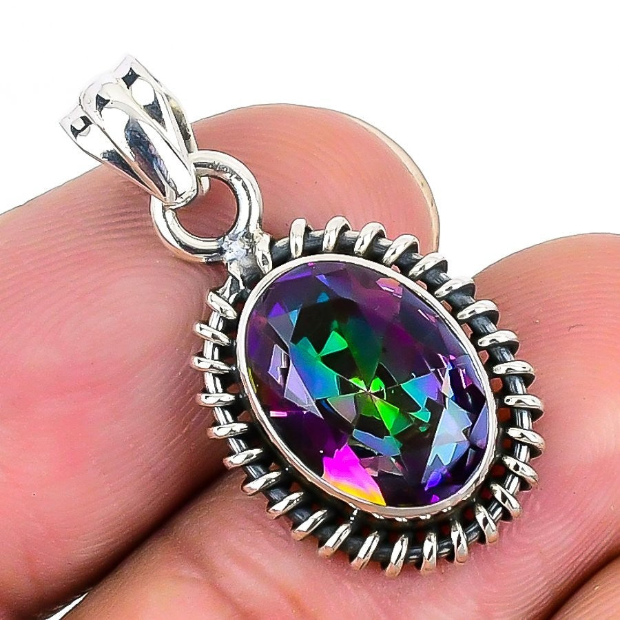 Natural Mystic Topaz Channel Set Sister Trendy Pendant Jewelry Sterling Silver