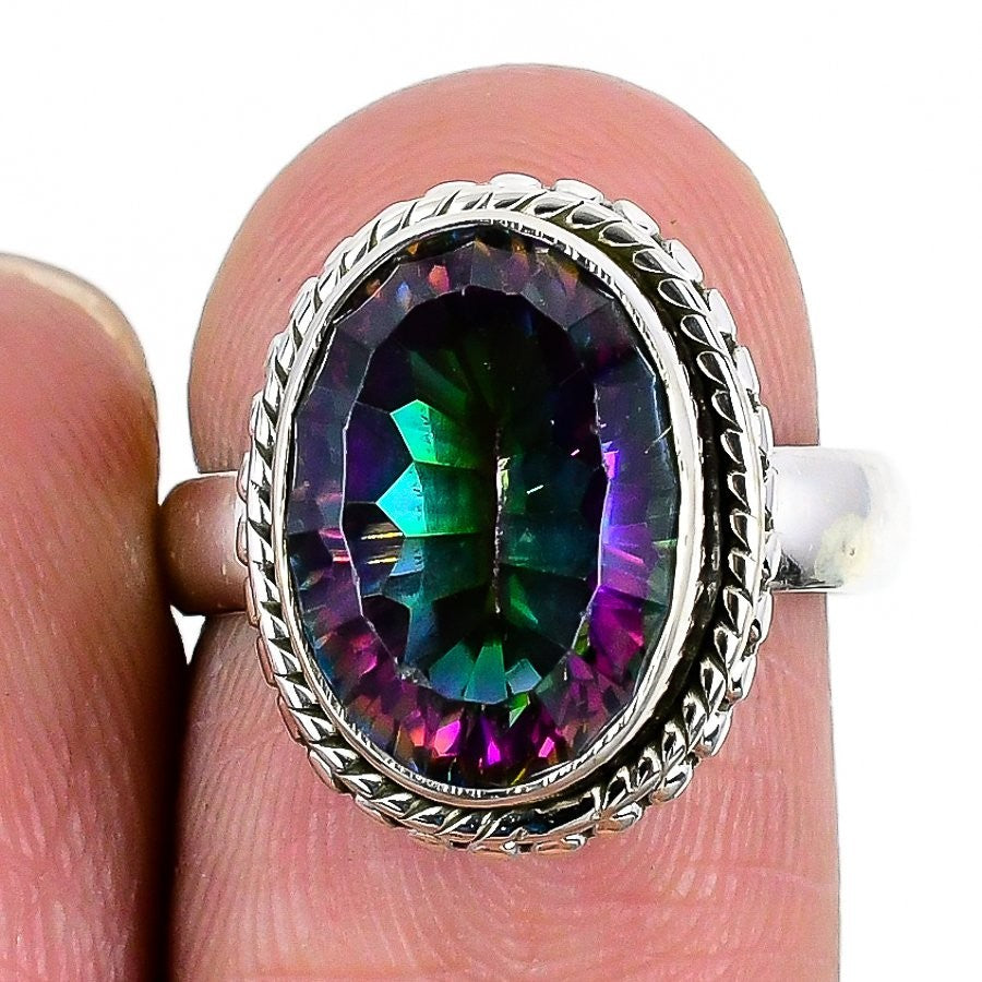Natural Mystic Topaz Mother Bezel Statement Birthday Ring Size 7 Sterling Silver