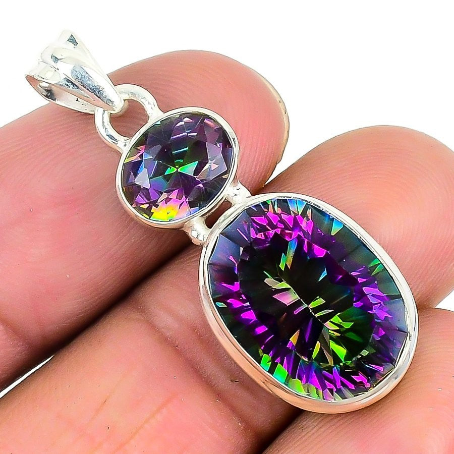 Natural Mystic Topaz Sister Channel Set Anniversary Pendant Jewelry Solid Silver