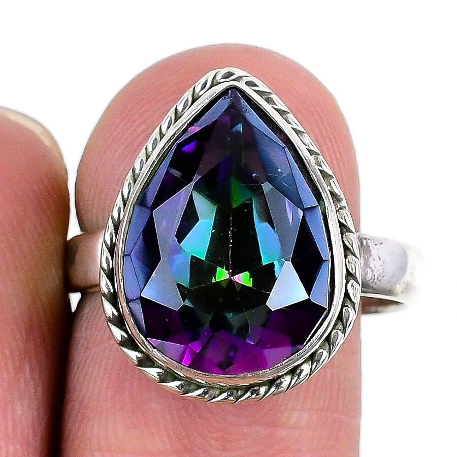 Natural Mystic Topaz Solid Silver Valentines Boho Statement Bezel Ring US 8.5