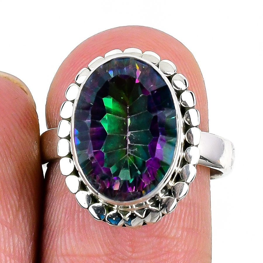 Natural Mystic Topaz Sterling Silver Daughter Statement Boho Ring Jewelry US 7.5