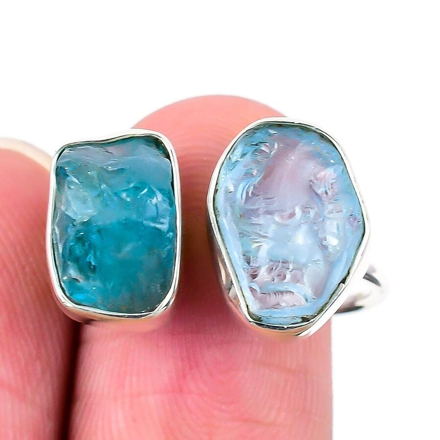 Natural Neon Blue Apatite Handmade Statement New Ring Solid Sterling Silver US 8