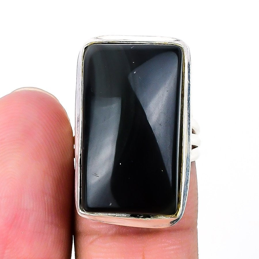 Natural Obsidian Eye 925 Solid Silver Statement Best Daughters Gift Ring Size 7