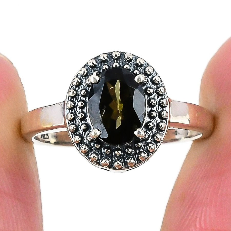Natural Olive Topaz 925 Sterling Silver November Statement Ring Jewelry Size 8