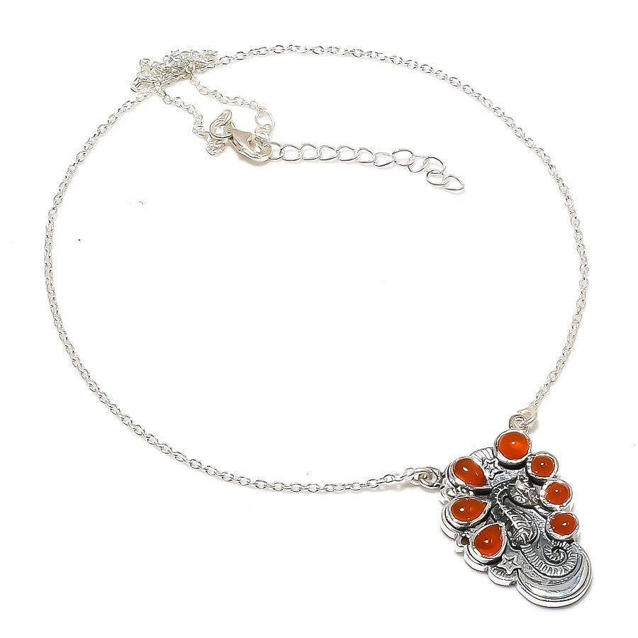 Natural Orange Carnelian 925 Silver Engagement Chain Wedding Necklace Jewelry