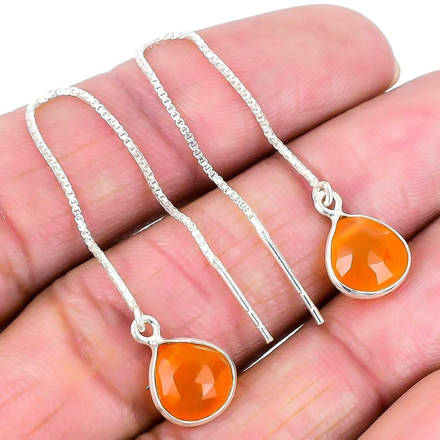 Natural Orange Carnelian 925 Solid Silver Dangle Drop Unique Earrings Jewelry
