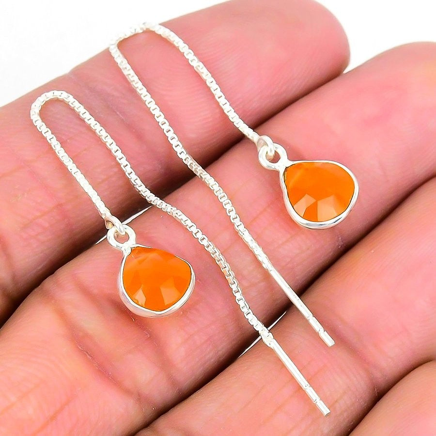 Natural Orange Carnelian Dangle Daughter Earrings Jewelry Solid Sterling Silver