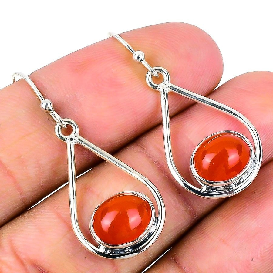 Natural Orange Carnelian Sterling Silver Ethnic Drop Dangle Friend Gift Earrings