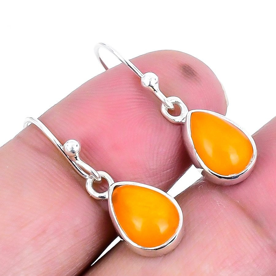Elegant Natural Orange Ethiopian Opal 925 Silver Dangle in 9