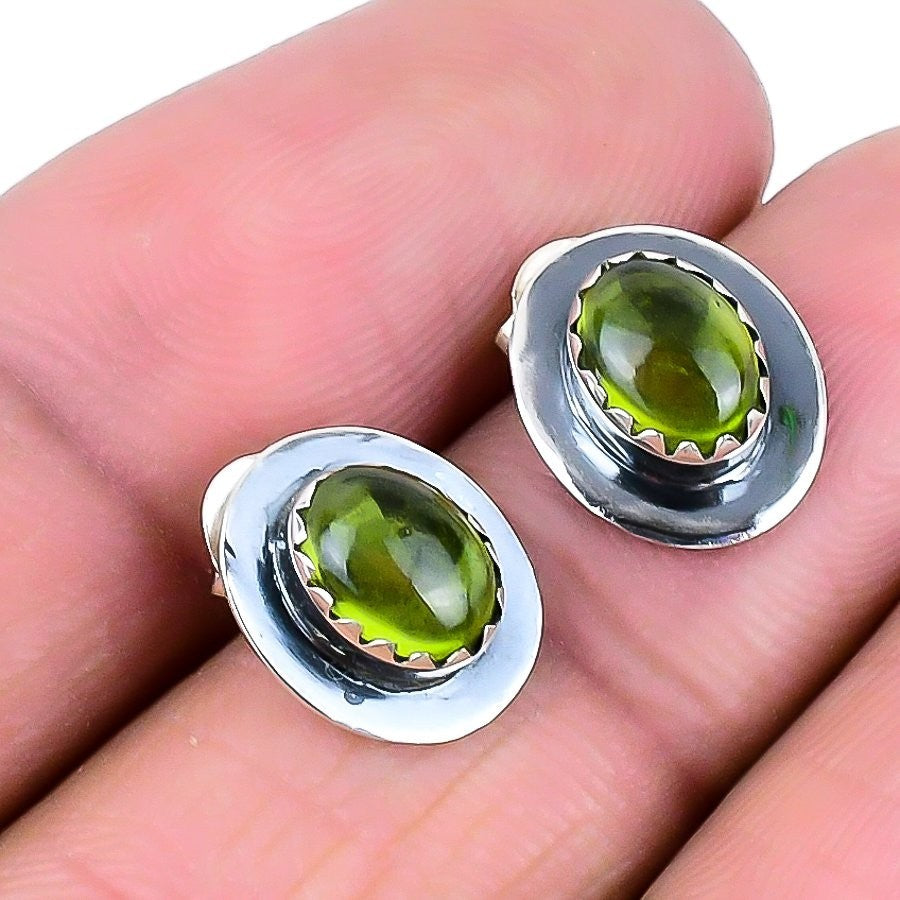 Natural Peridot 925�Solid�Silver Push Back Wedding Stud Heart Chakra Earrings