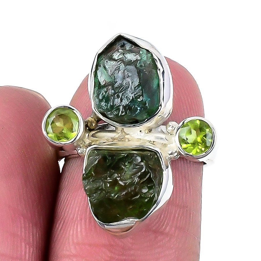 Natural Peridot 925 Sterling Silver Handmade Statement Sister Ring Jewelry US 6