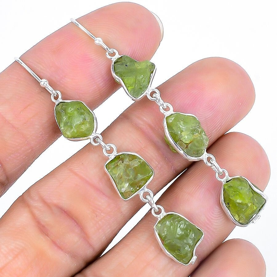 Elegant Natural Peridot Druzy 925 Solid Silver Hook in 925 S