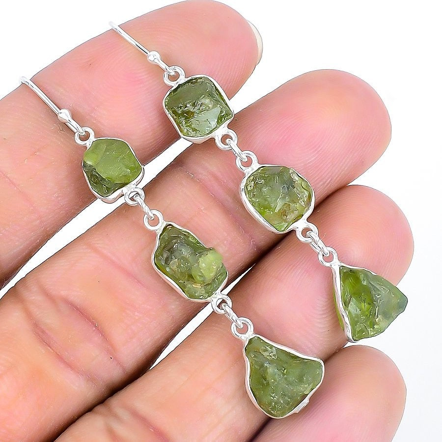 Elegant Natural Peridot Druzy Solid Sterling Silver Hook in