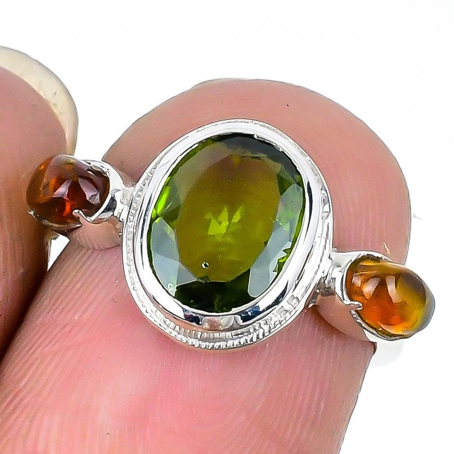 Natural Peridot Faceted August Birth Statement Birthday Ring Size 5.5 925 Silver