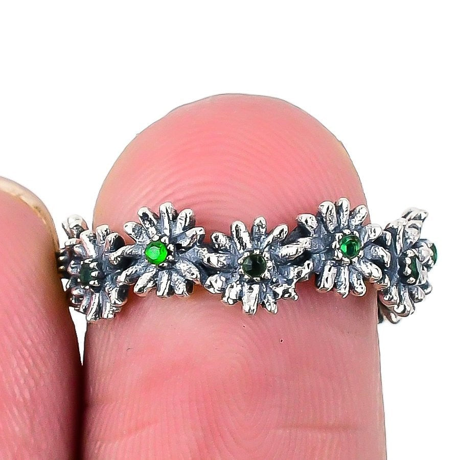 Natural Peridot Solid Silver Statement Sisters Gift Artisan Ring Jewelry US 6.5