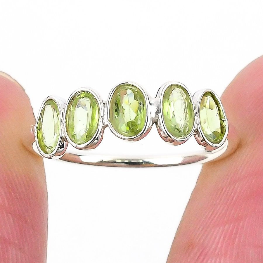 Natural Peridot Sterling Silver Wedding Handmade Statement August Ring US 6.5