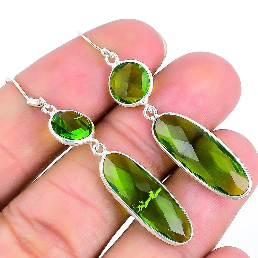Natural Peridot Treated Glass New Drop Sister Earrings Jewelry Sterling Silver