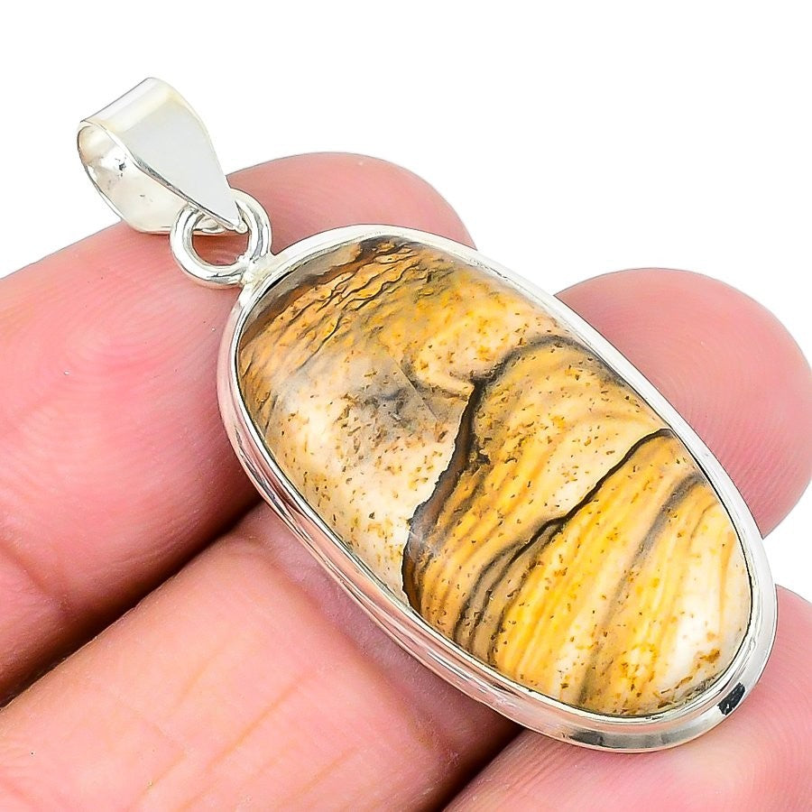 Natural Picture Jasper 925 Solid Silver Friend Gift Engagement New Wife Pendant