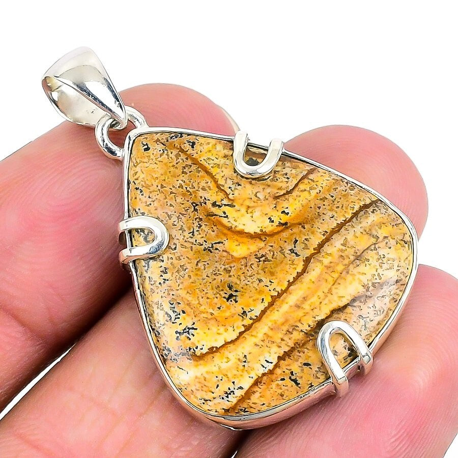Natural Picture Jasper Solid Silver Trendy Wife Art Deco Unique Pendant Jewelry