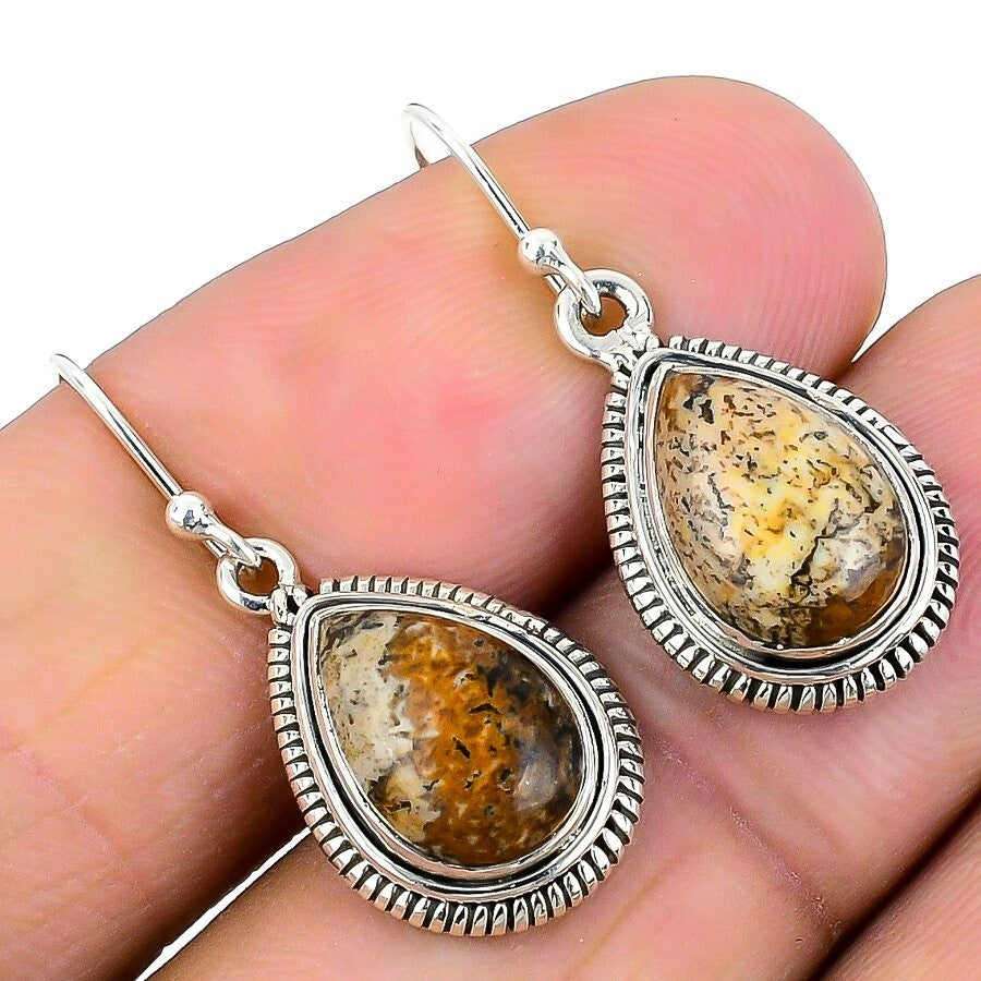 Natural Picture Jasper Sterling Silver Hook Artisan Dangle Unique Boho Earrings