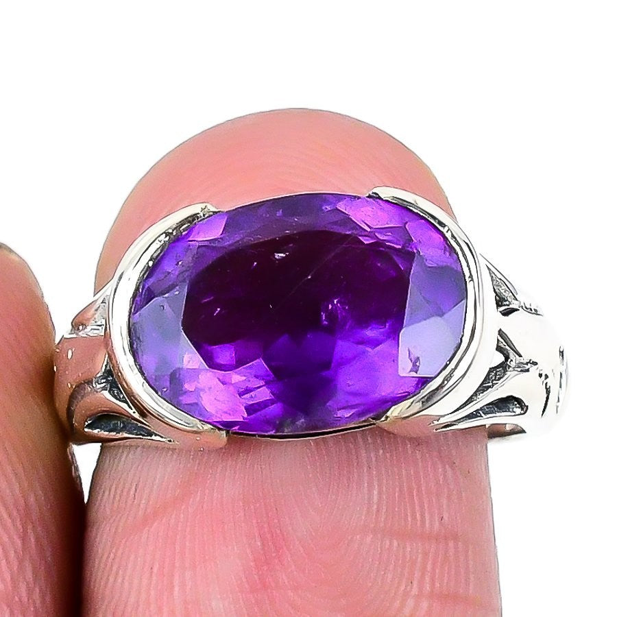 Natural Pink Amethyst Solid Silver Boho Mother New Statement Wedding Ring US 8